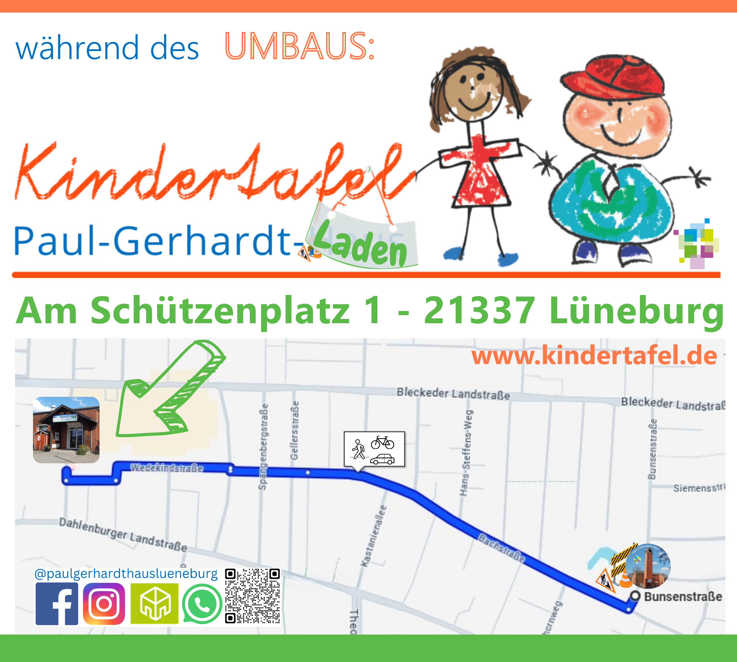 Für die Zeit des Umbaus im Paul-Gerhardt-Haus (ca. 18 Monate) sind wir in den Paul-Gerhardt-Laden, Am Schützenplatz 1, umgezogen. Durch das Engagement von viele ehrenamtlich Engagierten - organisiert und koodiniert vom Kindertafel-Team - haben wir im Paul-Gerhardt-Laden Lernorte eingerichtet.